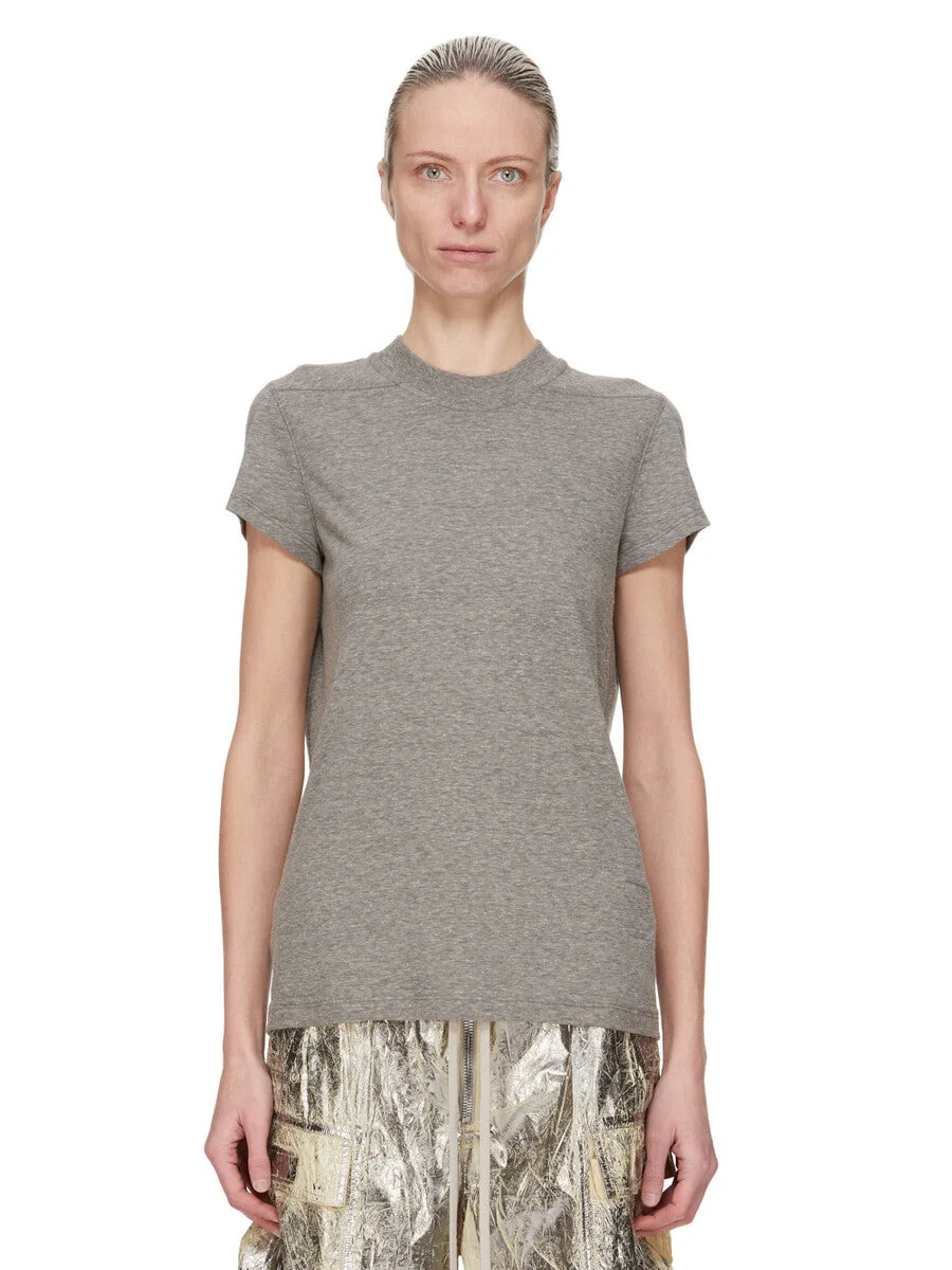 DRKSHDW FW25 CONCORDIANS SMALL LEVEL T IN GREY MELANGE JERSEY THIS SMALL LEVEL T IS HIP LENGTH WITH A SEMI-FITTED CUT, SHORT SLEEVES AND A RIBBED CREW NECK. IT FEATURES SIGNATURE FRONT LEVEL SHOULDER SEAMS AND A CENTRE BACK SEAM. THIS LIGHTWEIGHT COTTON AND POLYESTER MELANGE JERSEY HAS A SOFT HANDFEEL. THIS FABRIC IS MADE USING GOTS CERTIFIED ORGANIC COTTON AND GRS CERTIFIED RECYCLED POLYESTER. COLOR: MELANGE GREY MATERIAL: 55% COTTON 45% POLYESTER MODEL IS 181CM TALL MODEL WEARS SIZE S