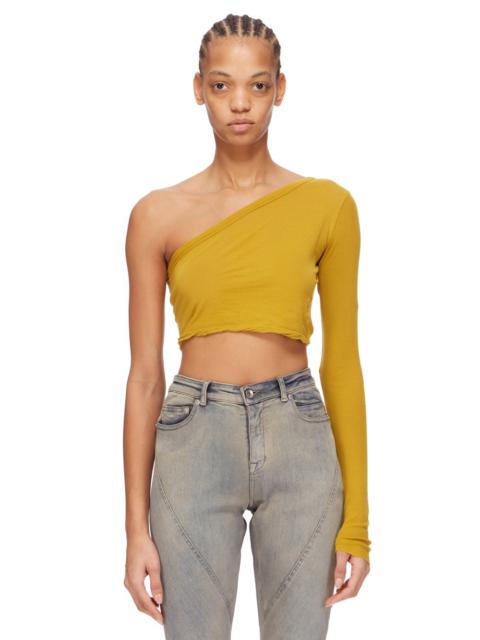 DRKSHDW FW24 PORTERVILLE ZIGGY TOP IN PEARL COTTON GAUZE JERSEY THIS ZIGGY TOP FINISHES BELOW THE BUST, AND HAS AN ASYMMETRICAL, SINGLE SHOULDER NECKLINE WITH ONE LONG SLEEVE THIS LIGHTWEIGHT AND AIRY COTTON GAUZE JERSEY IS SEMI TRANSPARENT AND HAVE A SOFT WASHED HAND FEEL. THIS JERSEY IS GARMENT DYED THIS FABRIC IS MADE USING GOTS CERTIFIED ORGANIC COTTON WHICH MEANS THE NATURAL FIBER IS GROWN WITHOUT HARMFUL CHEMICALS, LEAVING OUR SOIL, AIR AND WATER CLEANER FROM CONTAMINATES - COLOR: PEARL - MATERIAL: 100% COTTON - MODEL IS 181CM TALL - MODEL WEARS SIZE S