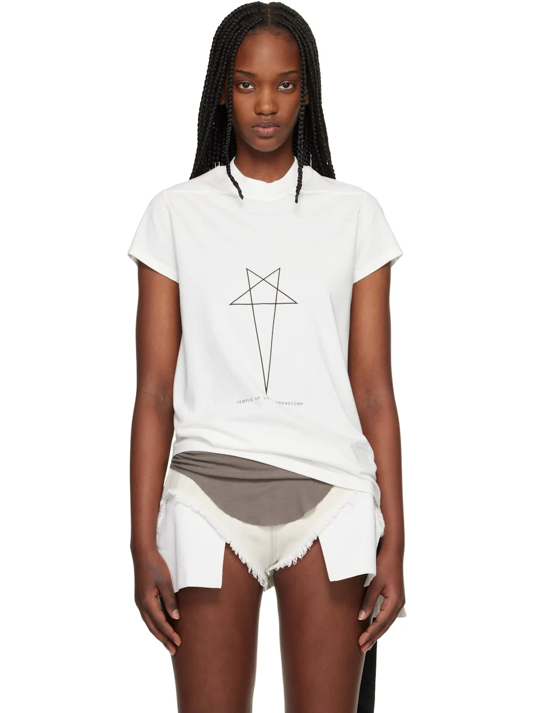 Garment-dyed organic cotton jersey T-shirt. · GOTS-certified organic cotton · Rib-knit crewneck · Logo graphic and text printed at front · Offset shoulder seams · Central seam at back · Logo-woven strap at interior Supplier color: Milk/Black 100% organic cotton. Made in Italy 261126F110020
