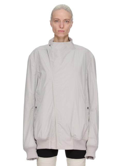 RICK OWENS FW25 CONCORDIANS HOLLYWOOD FLIGHT IN BLACK MATTE NYLON THIS HOLLYWOOD FLIGHT IS BELOW HIP LENGTH WITH LONG SLEEVES. IT HAS AN OFF-CENTRE ZIPPER WITH TOP SNAP, A SMALL, ROUNDED, FUNNEL NECK AND RIBBED CUFF AND HEM, AND SIDE SNAP POCKETS AND A ZIPPERED POCKET ON THE LEFT FOREARM. IT FEATURES A DOUBLE SNAP DETAIL ON THE BACK YOKE. IT IS FULLY LINED AND HAS INTERNAL ZIPPERED POCKETS THIS LIGHTWEIGHT NYLON HAS A BRUSHED, PEACHY FINISH AND A DRY HANDFEEL. IT IS WATER REPELLENT COLOR: BLACK MATERIAL: 100% NYLON KNIT RIB BOTTOM AND CUFFS 100% NEW WOOL SLEEVES LINING 100% CUPRO POCKETS LINING 100% COTTON PADDING 100% POLYESTER MODEL IS 181CM TALL MODEL WEARS SIZE 40