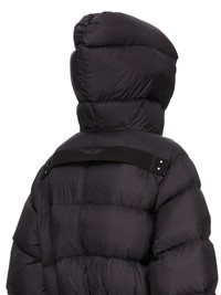 RICK OWENS FW25 CONCORDIANS HOODED JKT IN BLACK LIGHT NYLON THIS HOODED JKT IS CROPPED BELOW THE WAIST WITH A CENTRE FRONT ZIPPER, WITH TOP SNAP CLOSURE AND A HOOD. IT IS PADDED AND QUILTED WITH HORIZONTAL STITCHING LINES AND HAS SIDE FRONT WELT POCKETS WITH SNAPS, A WIDE RIBBED WAISTBAND RIBBED WRISTS. IT FEATURES A SIGNATURE COTTON WEBBING STRAP, WITH RIVET DETAIL, ACROSS THE BACK YOKE. THIS AIRY AND LIGHTWEIGHT NYLON IS MADE USING GRS CERTIFIED RECYCLED NYLON WHICH ENSURES A REDUCTION IN WATER CONSUMPTION, EMISSIONS AND HAZARDOUS WASTE, LESSENING THE DEPENDENCE ON NON-RENEWABLE RESOURCES. COLOR: BLACK MATERIAL: 100% NYLON KNIT RIB BOTTOM AND CUFFS 100% NEW WOOL POCKETS LINING 100% COTTON PADDING 90% GOOSE DOWN + 10% MALLARD FEATHERS MODEL IS 181CM TALL MODEL WEARS SIZE 40