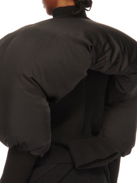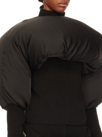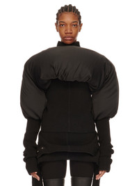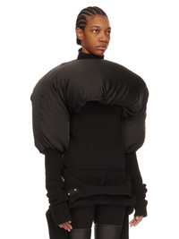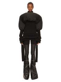 RICK OWENS FW24 PORTERVILLE DUVETINA SHROUD IN BLACK WASHED CHARMEUSE THIS DUVETINA SHROUD IS A HEAVY WEIGHT DUVET YOKE THAT FITS OVER THE HEAD, WITH A MINIMAL SLIT, BOAT NECKLINE. COVERING THE SHOULDERS, IT DESCENDS TO ELBOW LENGTH AND FINISHES IN LONG, RIB SLEEVES THIS LIGHTWEIGHT AND FLUID CHARMEUSE HAS A SEMI-SHINY SURFACE AND WASHED FINISH. THIS FABRIC IS MADE FROM FSC® CERTIFIED VISCOSE WHICH ENSURES THAT THE FIBERS ARE PRODUCED FROM RESPONSIBLY MANAGED SOURCES AND NO DEFORESTATION OCCURS - COLOR: BLACK - MATERIAL: 61% ACETATE + + 39% VISCOSE - KNIT RIB ARM WARMERS 87% CASHMERE + 7% NYLON + 3% WOOL + 3% ELASTANE - PADDING 90% GOOSE DOWN + 10% MALLARD FEATHERS - MODEL IS 181CM TALL - MODEL WEARS SIZE 40