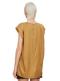 RICK OWENS FW24 PORTERVILLE DYLAN TOP IN HONEY WASHED CHARMEUSE THIS DYLAN TOP IS BELOW HIP LENGTH, IT HAS AN EXTREME DEEP V NECK WITH WIDE RAW CUT REINFORCED SHOULDERS. IT FEATURES THE SIGNATURE SINGLE SEAM RUNNING DOWN THE CENTRE BACK SPINE THIS LIGHTWEIGHT AND FLUID CHARMEUSE HAS A SEMI-SHINY SURFACE AND WASHED FINISH. THIS FABRIC IS MADE FROM CERTIFIED VISCOSE WHICH ENSURES THAT THE FIBERS ARE PRODUCED FROM RESPONSIBLY MANAGED SOURCES AND NO DEFORESTATION OCCURS COLOR: BLACK MATERIAL: 61% ACETATE + 39% VISCOSE MODEL IS 181CM TALL