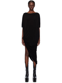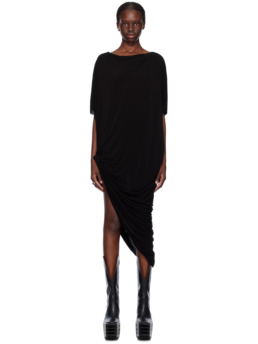 Stretch cupro jersey dress. · Foldover trim at boat neck · Raw edge at asymmetric hem and cuffs · Twisted detailing and slit at side seam · Dolman sleeves Supplier color: Black