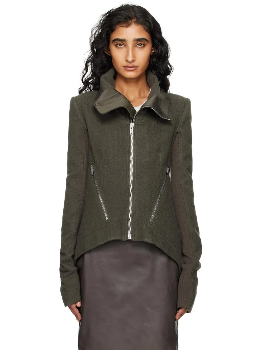 Boiled virgin wool drill jacket. · RWS-certified virgin wool · Funnel neck · Offset zip closure · Zip pockets at waist · Rib-knit gusset at sleeves · Vented handkerchief back hem · Fully lined Supplier color: Bosco Body: 100% virgin wool. Trim: 100% virgin wool. Lining 1: 100% cupro. Lining 2: 100% cotton. Made in Italy 252232F064012