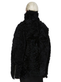 RICK OWENS FW25 CONCORDIANS EXPLODER JKT IN BLACK TOSCANA SHEARLING THIS EXPLODER JKT IS BELOW WAIST LENGTH IN FRONT AND LONGER IN THE BACK. IT HAS LONG SLEEVES WITH ZIPPERED WRISTS AND A CENTRE FRONT ZIPPER THAT CLOSES ALL THE WAY UP OVER THE NOSE. IT CAN BE WORN CLOSED OR OPEN, CREATING A WIDE LAPEL. IT FEATURES A CURVED, SLIGHTLY LIFTED, FRONT HEM THAT ENDS IN POINTS AT THE SIDES AND HAS TWO FRONT SIDE ZIPPERED POCKETS ON THE LEATHER SIDE. THIS VERSION HAS SOFT LONG, CURLY FUR ON THE INSIDE, AND SIDE SEAMS, AND IS COMPLETELY REVERSIBLE. THIS MEDIUMWEIGHT SHEARLING LAMB LEATHER HAS A WAXY NAPPA FINISH AND A SOFT, LONG AND CURLY FUR. TANNED IN THE TUSCANY AREA OF ITALY, THESE SHEARLING HIDES ARE OF NORTH SPANISH ORIGIN. THE SPECIFIC CURLY AND LONG HAIR TEXTURE IS ONLY FOUND IN THE BURGOS REGION OF SPAIN. BECAUSE THE HAIR IS NATURAL, THERE WILL BE VARIATIONS IN HAIR LENGTH AND TEXTURE, MAKING EACH PIECE UNIQUE. THIS TANNERY IS LWG CERTIFIED WITH A SILVER RATING. COLOR: BLACK MATERIAL: 100% LAMB SHEARLING REAL FUR ZIPPER EDGE + POCKETS DETAIL 100% CALF LEATHER POCKETS LINING 100% COTTON MODEL IS 181CM TALL MODEL WEARS SIZE 40