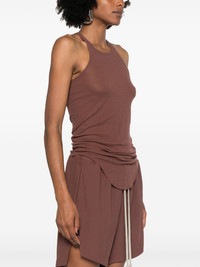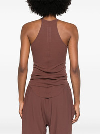 fine-ribbed tank top Highlights - Oxblood red - Fine ribbed - Semi-sheer construction - Raw-cut finish - Round neck - Sleeveless - Racerback - Curved hem Made in Italy Composition Viscose 88%, Silk 12% SIZE & FIT Model measurements Height 5 ft 11 in(1.8 m) Bust/Chest 32.67 in(83 cm) Hips 35.82 in(91 cm) Waist 25.98 in(66 cm) Measurement BUST 22 in(55.9 cm) LENGTH 30 in(76.2 cm) WAIST 22 in(55.9 cm) FittingInformation Designed for a slim fit that sits just away from the body offering a close yet comfortable fit Made from a lightweight non-stretch fabric, this piece offers minimal elasticity when worn This piece fits true to size – take your usual size