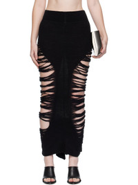 Knit stretch alpaca-blend midi skirt. · Laddering throughout · Rib-knit waistband · Ruffled droptail hem Supplier color: Black 48% alpaca, 30% polyamide, 20% wool, 2% elastane. Made in Italy 252232F092015