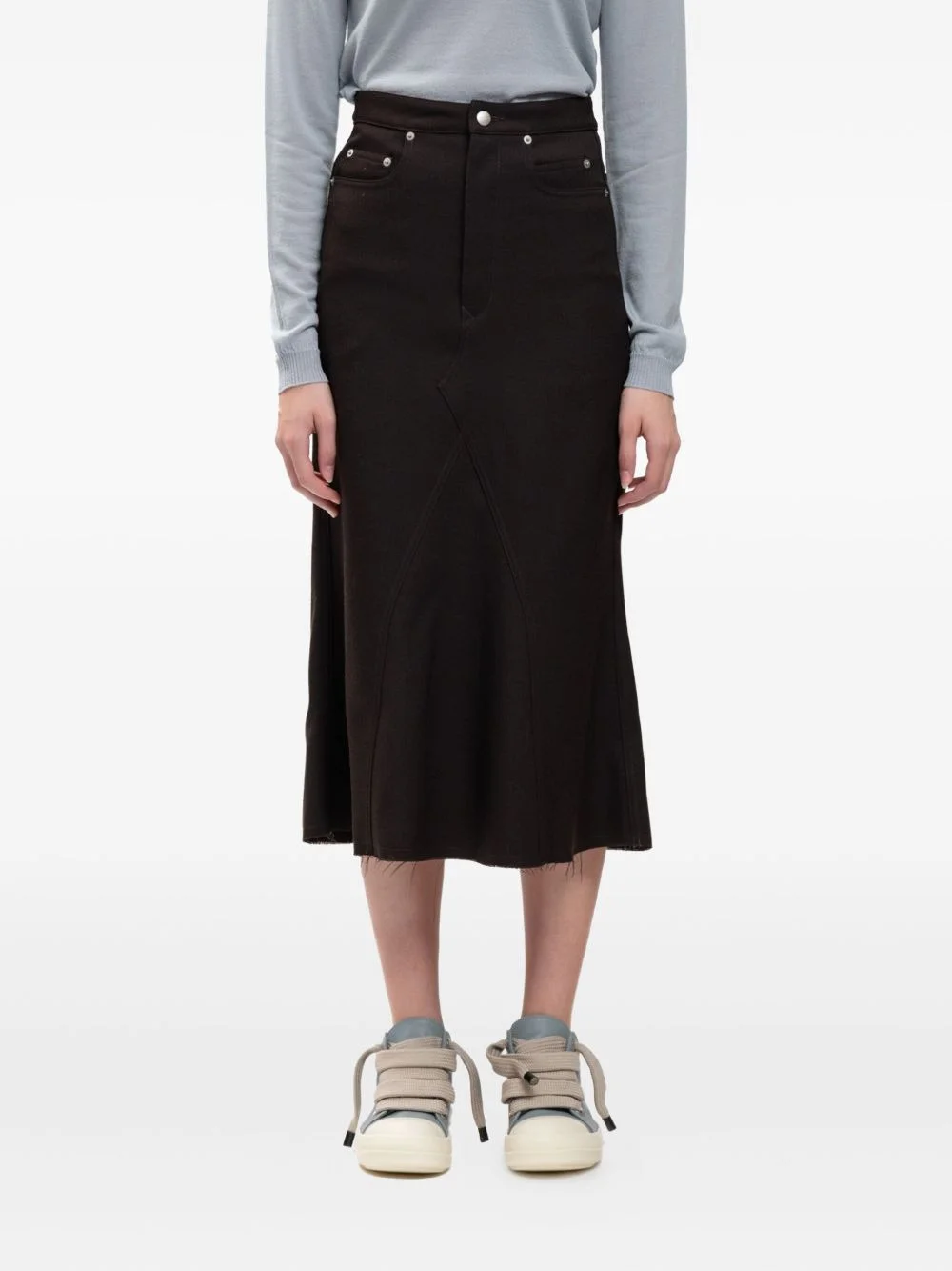 godet wool skirt Highlights - Black - Wool - Godet panels - High waist - Straight hem - Raw edge hemline Made in Italy Composition Wool 100% Washing instructions Read Manufacturer Guidelines