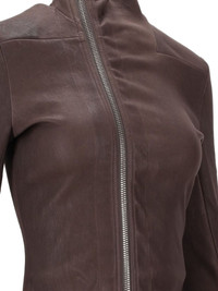 Gary leather jacket Highlights - Brown - Leather - Zip fastening - Long sleeves - High collar - Silver-tone zipper Imported Composition Lambskin 65%, Cotton 34%, Spandex/Elastane 1% Washing instructions Read Manufacturer Guidelines