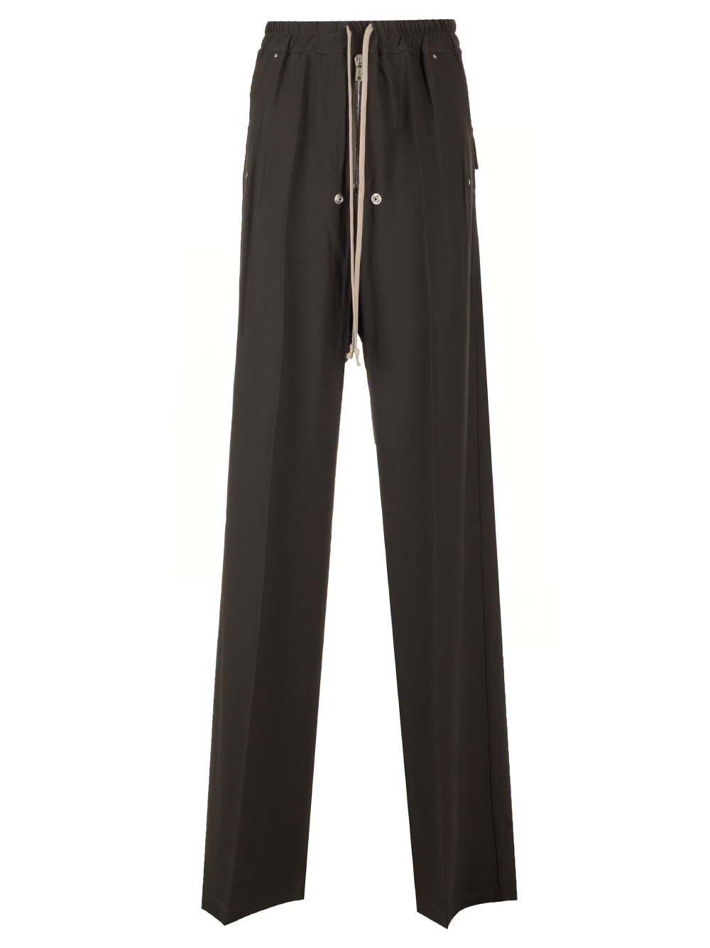 "Geth Belas" cupro trousers from Rick Owens, with wide leg, elastic waist, visible front zip. - Colour: Brown - Composition: 53% viscose + 47% acetat - Country Of Manufacture: IT - MPN: RP02D3361HY078