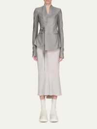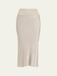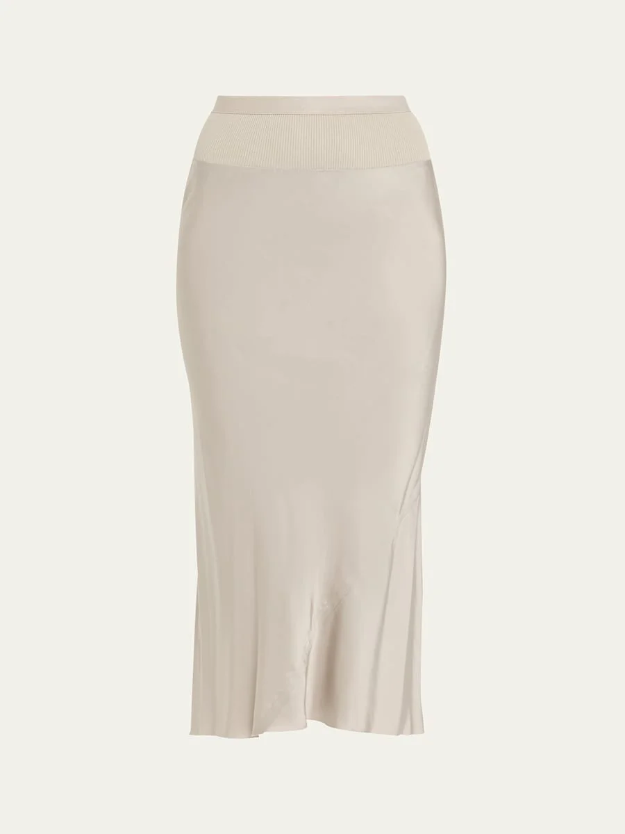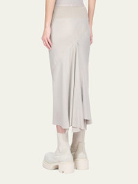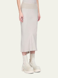 Rick Owens skirt featuring a godet flounce back and a ribbed waistband Mid waist Hem falls below the knee Skirt falls straight from hip to hem Pull-on style Acetate/viscose Made in Italy Online Inquiries: BGS21_BAAFR| Store Inquiries: #5067669