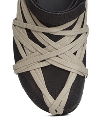 RICK OWENS FW25 CONCORDIANS MULE GRANOLAS IN BLACK CRACKED CALF LEATHER THESE MEGALACE MULE GRANOLAS ARE SLIP ON WITH A COVERED FOOT UP TO THE BRIDGE, AND AN OPEN BACK WITH ADJUSTABLE STRAP. THEY HAVE A GRANOLA SCULPTED FOOTBED, A SHARK-TOOTHED SOLE AND FEATURE THE SIGNATURE MEGA-LACING DETAIL IN A PENTAGRAM SHAPE COVERING THE FRONT THIS MEDIUMWEIGHT CALF LEATHER IS VEG TANNED WITH A CRACKED GRAIN TEXTURE AND A NATURAL WAXY HANDFEEL VEG TANNING MEANS ONLY VEGETAL AND NATURAL TANNINS WERE USED IN THE PROCESS OF TANNING AND PRESERVING THIS LEATHER THIS LEATHER IS MADE BY A THIRD GENERATION FAMILY OWNED TANNERY IN THE SOUTH OF ITALY COLOR: BLACK MATERIAL: UPPER 100% CALF LEATHER LINING 100% CALF LEATHER PLANTAR FACING 100% CALF LEATHER SOLE 100% COW LEATHER SOLE DETAIL 100% RUBBER