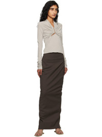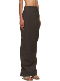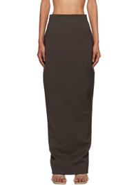 Plain-woven stretch virgin wool-blend maxi skirt. · Tapered · Darts and zip closure at back · Central vent at back hem · Full stretch satin lining Supplier color: Dark dust Body: 87% virgin wool, 10% polyamide, 3% elastane. Lining: 94% cupro, 6% elastane. Made in Italy 252232F093014