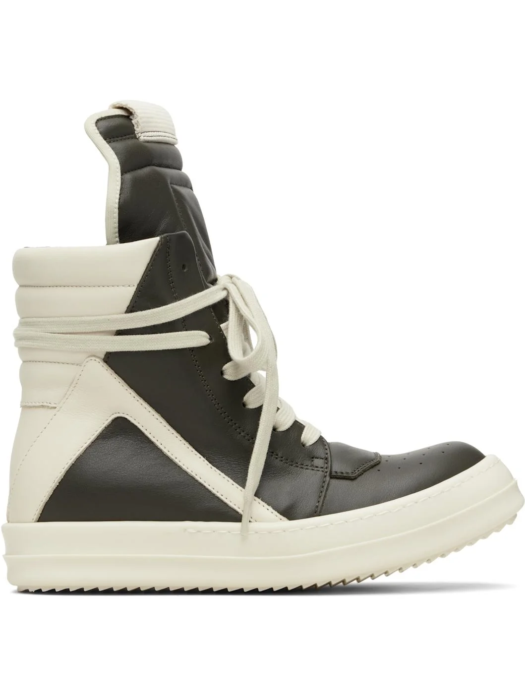 High-top buffed leather sneakers. · LWG-certified leather · Perforated detailing at toe · Lace-up closure · Padded and quilted collar · Zip closure at inner side · Treaded rubber sole Supplier color: Boaco/Milk/Milk Upper: leather. Sole: rubber. Made in Italy 252232F127022