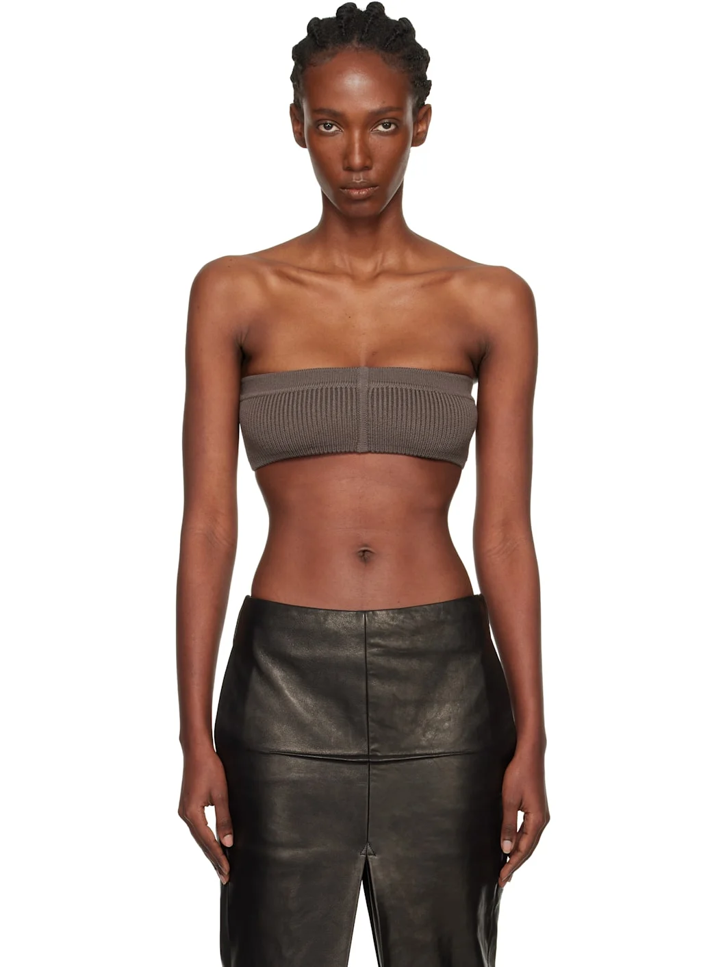 Rib-knit stretch virgin wool-blend bandeau-style top. Supplier color: Dark dust 97% virgin wool, 2% nylon, 1% elastane. Made in Italy 252232F111020