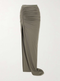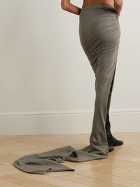 EDITORS'NOTES Rick Owens’ 'Edfu' maxi skirt is characterized by the dramatic split that reveals plenty of leg. This version is made from cotton-jersey that's ruched at the hips for texture and falls to an asymmetric, floor-pooling hem. SIZE & FIT Model measurements: - Fits true to size, take your normal size - Asymmetric hem, designed to be worn at the waist - Elasticated at the waist for a flexible fit - Train hem - Mid-weight, stretchy fabric - Model is 175cm/ 5'9" and is wearing an IT 40 - Bust: 81cm/ 32" - Waist: 64cm/ 25" - Hip: 89cm/ 35" DETAILS & CARE - Taupe cotton-jersey - Pulls on - 100% cotton - Hand wash - Designer color: Dust