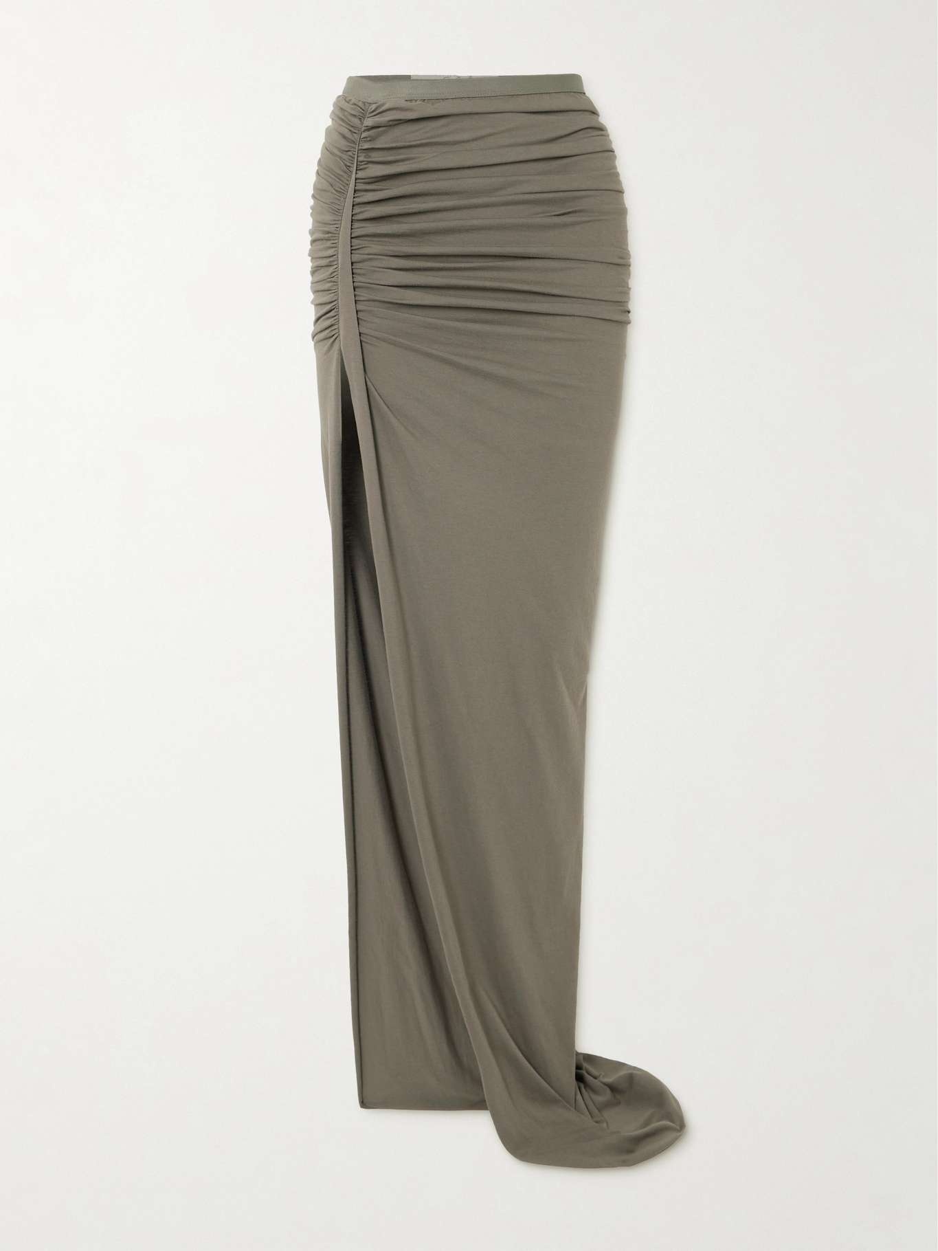 Edfu asymmetric ruched cotton-jersey maxi skirt Gray