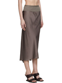 Lightweight bias-cut acetate-and viscose-blend charmeuse midi skirt. · Rib-knit waistband · Raw edge at hem · Godet panel at back Supplier color: Dust Body: 61% acetate, 39% viscose. Trim: 65% cotton, 35% polyamide. Made in Italy 251232F092012