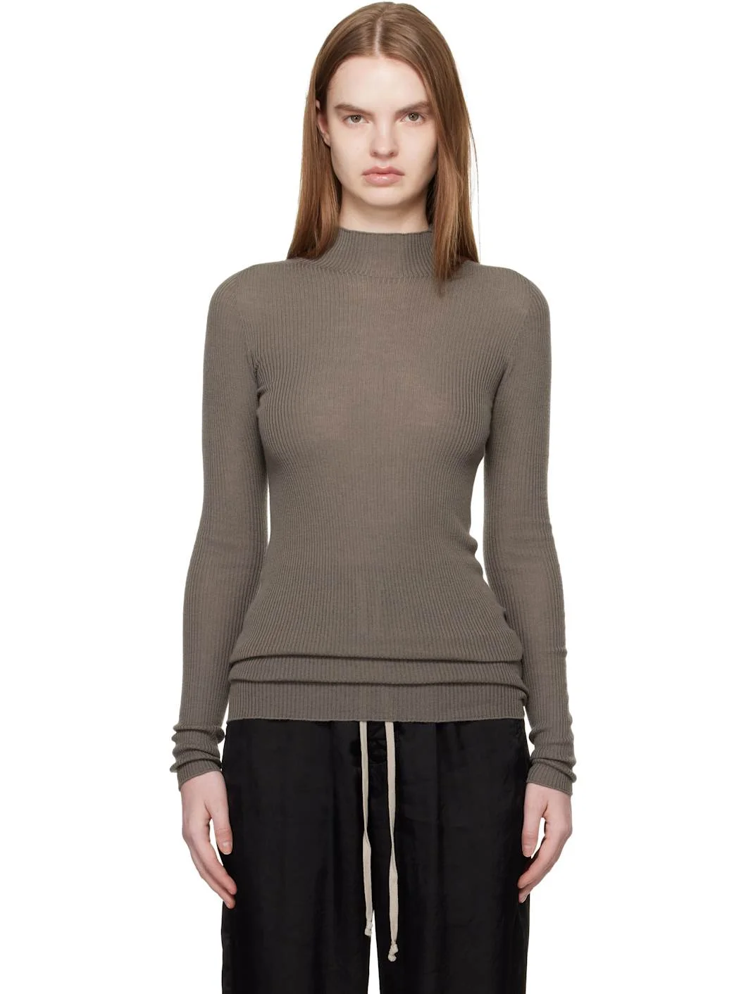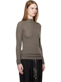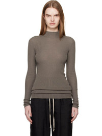 Lightweight rib-knit virgin wool sweater. · RWS-certified virgin wool · Mock neck · Saddle shoulders · Central garter-stitch stripe at back Supplier color: Dust 100% virgin wool. Made in Italy 261232F099008