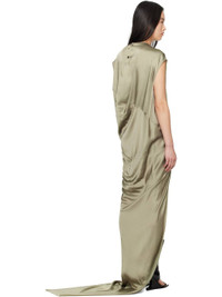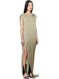 Acetate-blend charmeuse maxi dress. · Lightweight · Straight neck · Slit at side seam · Saddle shoulders · Button fastening at back collar · Extended train · Buffalo horn hardware Supplier color: Celadon 61% acetate, 39% viscose. Made in Italy 251232F055028
