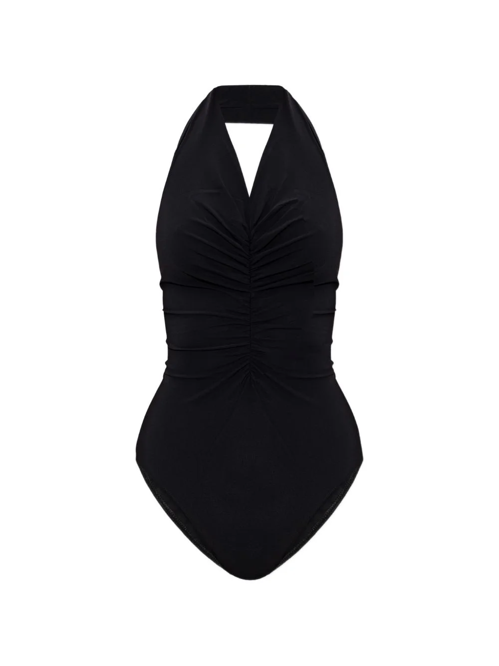 halterneck swimsuit Highlights - Black - Halterneck design - Gathered detail - Open back - Sleeveless - Be mindful to try on swimwear over your own garments. Made in Italy Composition Polyamide 79%, Elastane 21% Washing instructions Read Manufacturer Guidelines