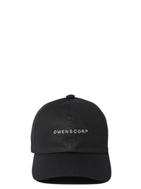 RICK OWENS FW25 CONCORDIANS OWENSCORP EMBROIDERED BASEBALL CAP IN BLACK/PEARL HEAVY COTTON POPLIN THIS BASEBALL CAP HAS A SLIGHTLY CURVED BRIM WITH STITCHING, AN ADJUSTABLE BACK STRAP AND EYELET VENTS ON THE CROWN OF THE HEADTHIS VERSION HAS THE WORD 'OWENSCORP' EMBROIDERED ON THE CENTRE FRONT THIS MEDIUMWEIGHT COTTON POPLIN HAS A CRISP HANDFEEL AND WASHED FINISH THIS FABRIC IS MADE USING GOTS CERTIFIED ORGANIC COTTON WHICH MEANS THE NATURAL FIBER IS GROWN WITHOUT HARMFUL CHEMICALS, LEAVING OUR SOIL, AIR AND WATER CLEANER FROM CONTAMINATES THIS PRODUCT IS EMBELLISHED WITH OUR SEASONAL OWENSCORP EMBROIDERY COLOR: BLACK/PEARL MATERIAL: 97% COTTON + 3% ELASTANE LINING 100% COTTON EMBROIDERY 100% POLYESTER THIS ITEM IS AVAILABLE IN SIZE S