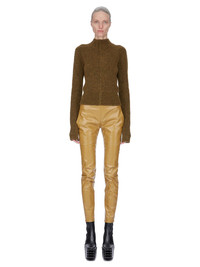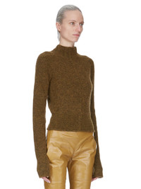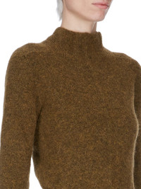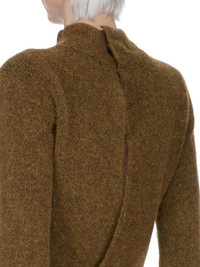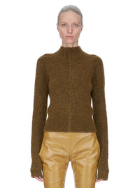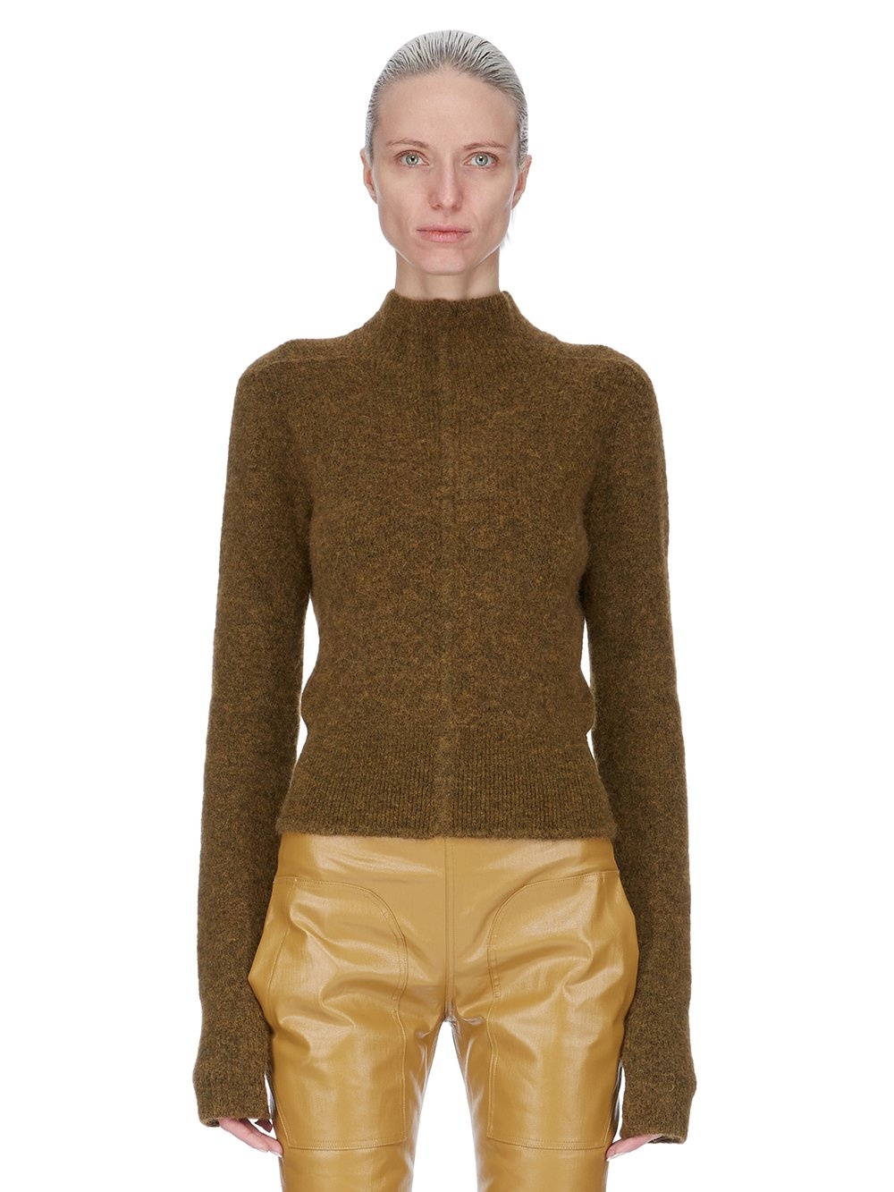 RICK OWENS FW24 PORTERVILLE HEADON PULL IN HONEY LIGHT ALPACA KNIT THIS HEADON PULL IS ABOVE HIP LENGTH WITH LONG SLEEVES. IT HAS A WIDE LUPETTO NECK, LEVEL SHOULDER SEAMS AND A CENTRE BACK OPENING. IT FEATURES A WIDE WAISTBAND AND A KNIT LINE RUNNING DOWN THE CENTRE FRONT THIS LIGHTWEIGHT ALPACA BLEND KNIT IS COMPACT WITH A SOFT AND BRUSHED HANDFEEL - COLOR: HONEY - MATERIAL: 48% ALPACA + 30% NYLON + 20% WOOL + 2% ELASTANE - MODEL IS 181CM TALL - MODEL WEARS SIZE S