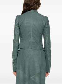Hollywood biker jacket Highlights - Sage green - Concealed front zip fastening - Funnel neck - Long sleeves - Internal jetted pockets Imported Composition Lining: Cupro 100% Outer: Lambskin 100% SIZE & FIT Model measurements Height 5 ft 10 in(1.79 m) Bust/Chest 35.43 in(90 cm) Hips 35.03 in(89 cm) Waist 25.19 in(64 cm) FittingInformation Designed for a slim fit that sits just away from the body offering a close yet comfortable fit Soft leather has a supple and smooth construction offering some flexibility