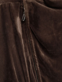 velvet zip-front cropped jacket Highlights - Brown - Velvet texture - Zip fastening - Cropped length - Elasticated hem - Long sleeves Imported Composition Velvet 100% Washing instructions Read Manufacturer Guidelines