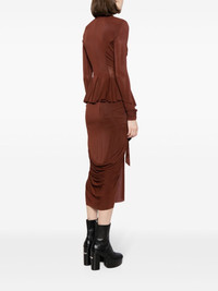Hollywood wrap jacket Highlights - Rust red - Stretch-design - Wrap design - Ruched detailing - V-neck - Self-tie fastening - Shoulder pads - Long sleeves - Ruffle hem Made in Italy Composition Cupro 96%, Elastane 4% SIZE & FIT Model measurements Height 5 ft 10 in(1.78 m) Bust/Chest 32.67 in(83 cm) Hips 37 in(94 cm) Waist 25.59 in(65 cm) FittingInformation Designed for a wraparound style that can be adjusted to your preference The internal shoulder pads offer a structured shape Made from a midweight stretch fabric, this piece offers elasticity and flexibility when worn This piece fits true to size – take your usual size
