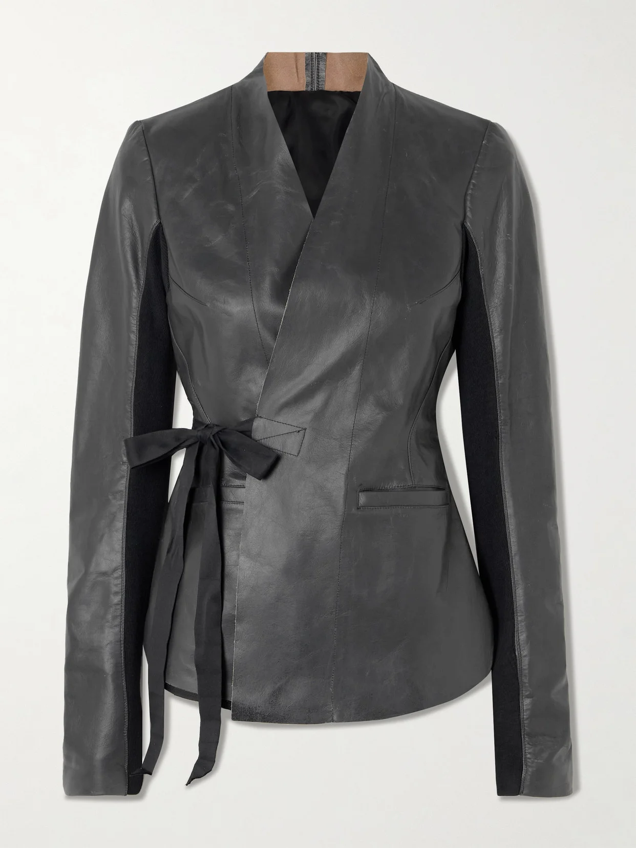 Hollywood Grosgrain-trimmed Leather Wrap Jacket