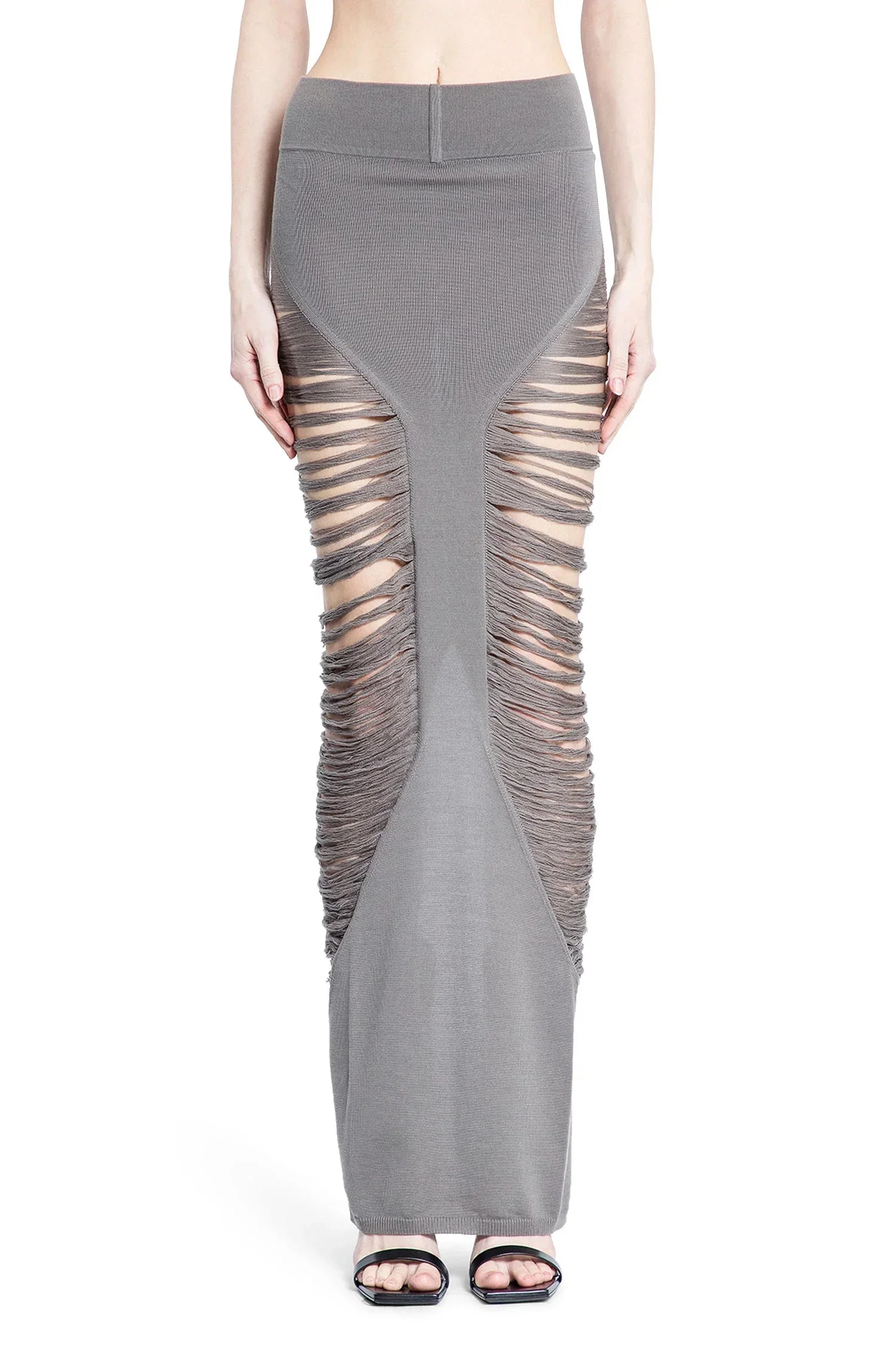 DESCRIPTION - Runway style - Dust - Shredded merino knit - High-waisted - Elastic waistband - Back signature seam - Back split - Tapered fit DETAILS - Made in: Italy - Composition: 100% Wool - Model code: RO01E7679KGRIDM 34 - Item ID: 9511969620310 SIZE & FIT Model wears size S Model Height 181 cm Bust 83 cm Waist 57 cm Hips 88 cm