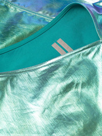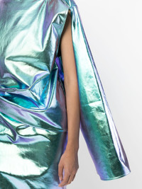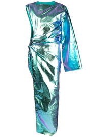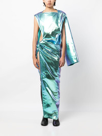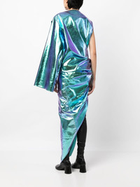 holographic asymmetric gown Inspired by the movement of Egypt’s cultural aesthetic, Rick Owens' SS23 collection was built on the brand's established extreme aesthetic codes. A case in point, this gown features a holographic effect for a striking finish. It has a side cut-out and a slit for a flash of skin. Highlights - Multicolour - Holographic effect - Cut-out detailing - Gathered detailing - Round neck - Sleeveless - Single long sleeve - Side slit - Maxi Made in Italy Composition Body: Cotton 91%, Elastane 6% SIZE & FIT Model measurements Height 5 ft 10 in(1.77 m) Bust/Chest 31.49 in(80 cm) Hips 35.43 in(90 cm) Waist 25.19 in(64 cm) FittingInformation Designed to be unstructured, offering a loose fit throughout Made from a midweight stretch fabric, this piece offers elasticity and flexibility when worn This piece fits large – take one size down Washing instructions Dry Clean Only