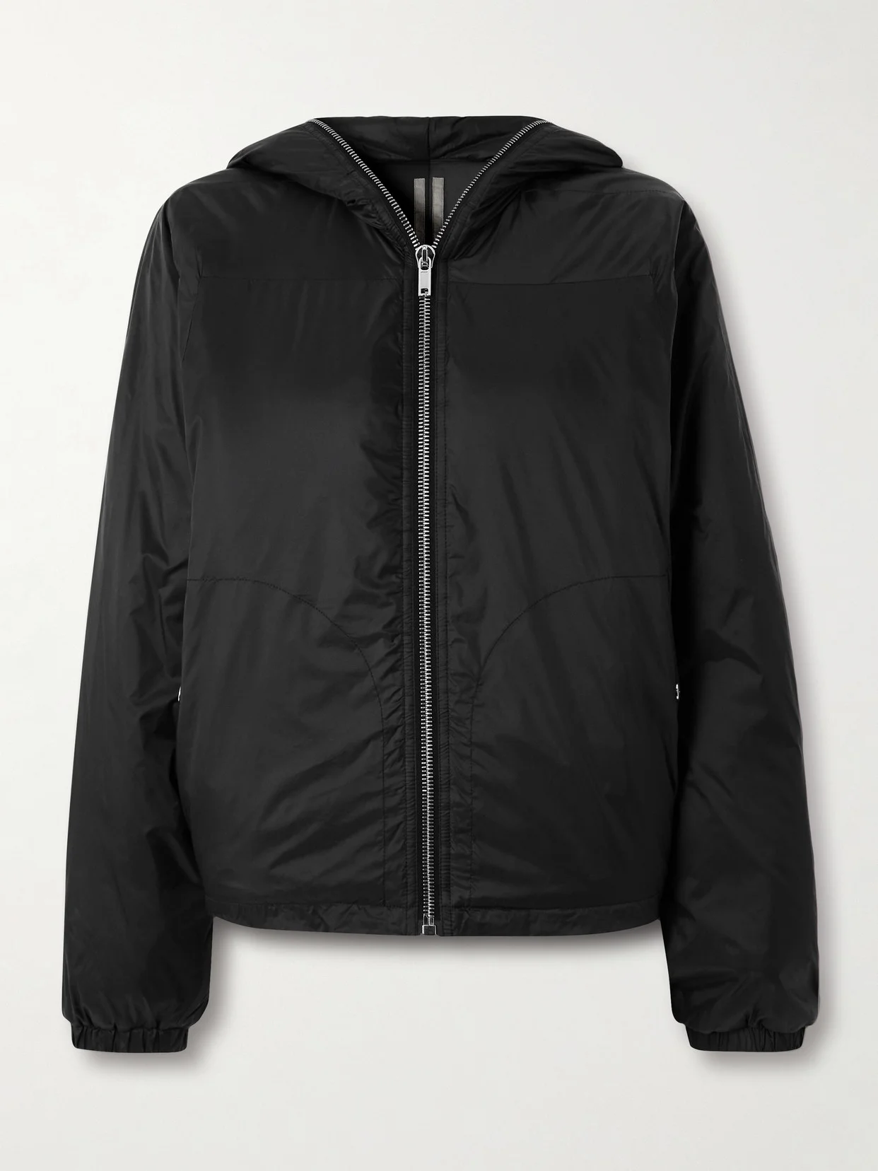 Padded for lightweight warmth, Rick Owens' jacket is an ideal choice for transitional weather. It's made from glossy shell and has a relaxed shape with an enveloping hood. The zip-up front allows for easy layering.