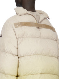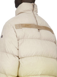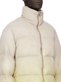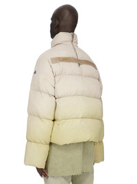 MONCLER + RICK OWENS FW23 CYCLOPIC JKT IN ACID DEGRADE NYLON THIS CYCLOPIC JKT IS BELOW WAIST LENGTH. IT HAS A FRONT ZIPPER CLOSURE, HIGH FUNNEL-NECK COLLAR, TWO FRONT SNAP CLOSURE POCKETS AND LONG SLEEVES WITH RIBBED CUFFS. IT ALSO FEATURES A VERTICAL ZIPPER ON THE BACK NECK AND A COTTON WEBBING STRAP, WITH RIVET DETAIL, ACROSS THE BACK YOKE. IT HAS INTERNAL SNAP POCKETS THIS AIRY AND LIGHTWEIGHT NYLON IS HAND TREATED WITH AN ACID DEGRADE FINISH.THIS GARMENT IS DYED BY HAND IN MULTIPLE STEPS USING NATURAL DYES. THE GARMENT IS FIRST SOAKED IN A DIRT COLORED DYE BATHS FOR SEVERAL HOURS. AFTER DRYING, AN ARTISAN DIPS THE GARMENT IN AN ACID COLORED DYE BATH MULTIPLE TIMES IN ORDER TO CREATE THE DEGRADE EFFECT. SINCE EACH STEP OF THIS PROCESS IS MANUAL AND THE DYES USED ARE NATURAL EACH PIECE WILL HAVE ITS OWN UNIQUE COLORATION, SHADINGS, SPOTS AND MARKS. THIS IS AN INHERENT CHARACTERISTIC OF THIS TYPE OF TREATMENT AND IS A DESIRED VISUAL ASPECT WHICH ADDS TO THE UNIQUENESS OF EACH PIECE - COLOR: ACID DEGRADE - MATERIAL: 100% NYLON - INSERT 90% COTTON + 9% NYLON + 1% ELASTANE - LINING 100% NYLON - PADDING 90% GOOSE DOWN + 10% GOOSE FEATHERS - MALE MODEL IS WEARING SIZE 2, FEMALE MODEL IS WEARING SIZE 0 - MALE MODEL IS 189 CM TALL, FEMALE MODEL IS 181 CM TALL
