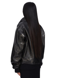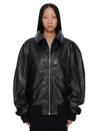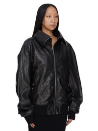 RICK OWENS FW25 CONCORDIANS RUNWAY DRACUCOLLAR FLIGHT IN BLACK VEG NAPPA LAMB THIS DRACUCOLLAR FLIGHT IS HIP LENGTH WITH LONG SLEEVES, A BOXY FIT AND A CENTRE FRONT ZIPPER. IT FEATURES AN EXTENDED LENGTH COLLAR THAT CAN BE WORN UP OR DOWN AND HOLDS ITS SHAPE THANKS TO IT BEING REINFORCED WITH FUSING MATERIAL. IT FEATURES TWO-SNAP POCKET CLOSURE DETAIL ON SIDE POCKETS, AND HAS RIBBED CUFFS AND WAISTBAND. IT IS FULLY LINED AND HAS TWO INTERNAL ZIPPERED POCKETS THIS MEDIUMWEIGHT LAMB LEATHER IS VEG TANNED AND FINISHED USING NATURAL WAXES AND ANILINE WHICH MAKES A SUPPLE HANDFEEL. BECAUSE THIS SKIN IS NAKED, NOT FINISHED USING ANY PIGMENTS COVERING THE SKIN, NATURAL MARKINGS AND SHADINGS ARE VISIBLE WHICH MAKES EACH SKIN AND PRODUCT UNIQUE VEG TANNING MEANS ONLY VEGETAL AND NATURAL TANNINS WERE USED IN THE PROCESS OF TANNING AND PRESERVING THIS LEATHER COLOR: BLACK MATERIAL: 100% LAMB LEATHER MODEL IS 181CM TALL MODEL WEARS SIZE 40