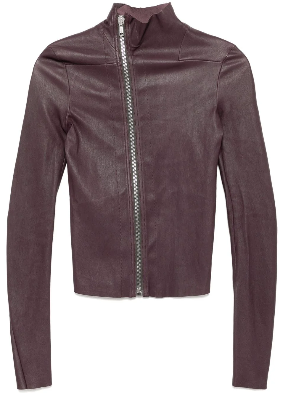 asymmetric design jacket Highlights - Dark purple - Zip fastening - Long sleeves Imported Composition Leather 65%, Cotton 34%, Spandex/Elastane 1% SIZE & FIT Model measurements Height 5 ft 10 in(1.77 m) Bust/Chest 31.49 in(80 cm) Hips 35.43 in(90 cm) Waist 25.19 in(64 cm) FittingInformation Designed for a close fit throughout Constructed with additional length on the sleeve Made from a lightweight stretch fabric, this piece offers elasticity and flexibility when worn Washing instructions Do Not Wash/Do Not Dry Clean