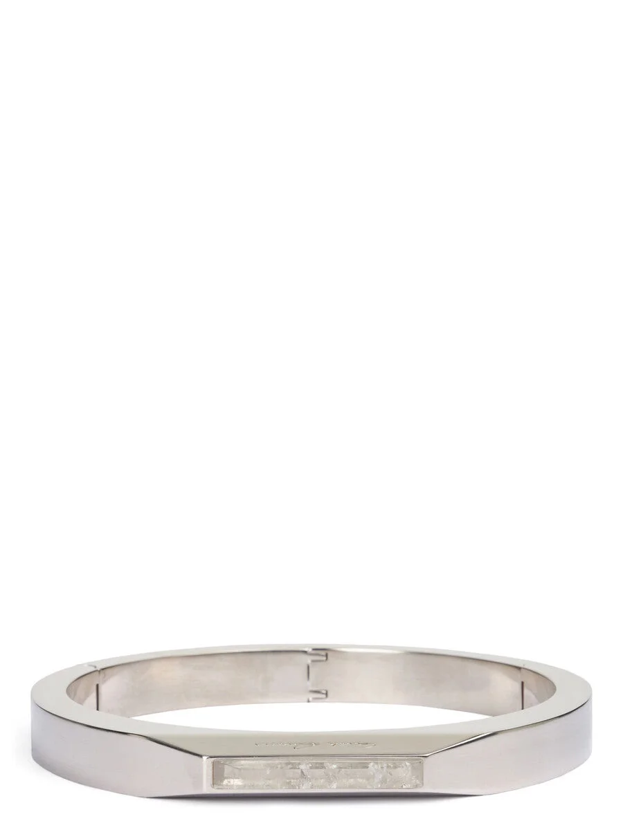 RICK OWENS CRYSTAL BEVELED CHOKER IN BRASS WITH PALLADIUM FINISH THIS CRYSTAL BEVELED CHOKER NECKLACE IS A SOLID METAL CHOKER WITH BEVELED EDGES ORNAMENTED WITH A ROCK CRYSTAL STONE. IT HAS A MAGNET CLASP CLOSURE IN THE BACK AND THE RICK OWENS LOGO ENGRAVED IN THE SIDE FACE THESE JEWELLERY PIECES ARE CRAFTED WITH THE INDIVIDUAL HANDWORK OF THE ARTISAN, MAKING EACH PIECE UNIQUE. - COLOR: PALLADIO - MATERIAL: 100% BRASS - INSERT: 100% ROCK CRYSTAL