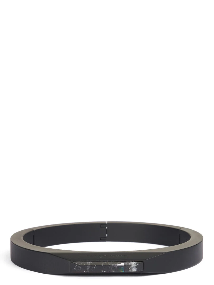 RICK OWENS BEVELED CHOKER IN BRASS WITH BLACK MATT FINISH THIS BEVELED CHOKER IS A RIGID METAL CUFF WITH BEVELED EDGES. IT HAS A SOLID INTERIOR, A MAGNETIC CLASP SIDE CLOSURE AND THE RICK OWENS LOGO ENGRAVED IN THE SIDE FACE THESE JEWELLERY PIECES ARE CRAFTED WITH THE INDIVIDUAL HANDWORK OF THE ARTISAN, MAKING EACH PIECE UNIQUE. - COLOR: BLACK - MATERIAL: 100% BRASS