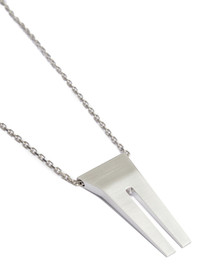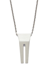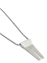 RICK OWENS OPEN TRUNK CHARM IN BRASS THIS OPEN TRUNK CHARM NECKLACE HAS A SMALL GEOMETRIC TRUNK SHAPE CHARM WITH BEVELED EDGES AND AN OPEN FACE CENTRE SLIT, HANGING FROM A CHAIN NECKLACE. IT HAS THE RICK OWENS LOGO ENGRAVED ON THE BACK. COLOR: PALLADIO MATERIAL: 100% BRASS