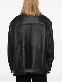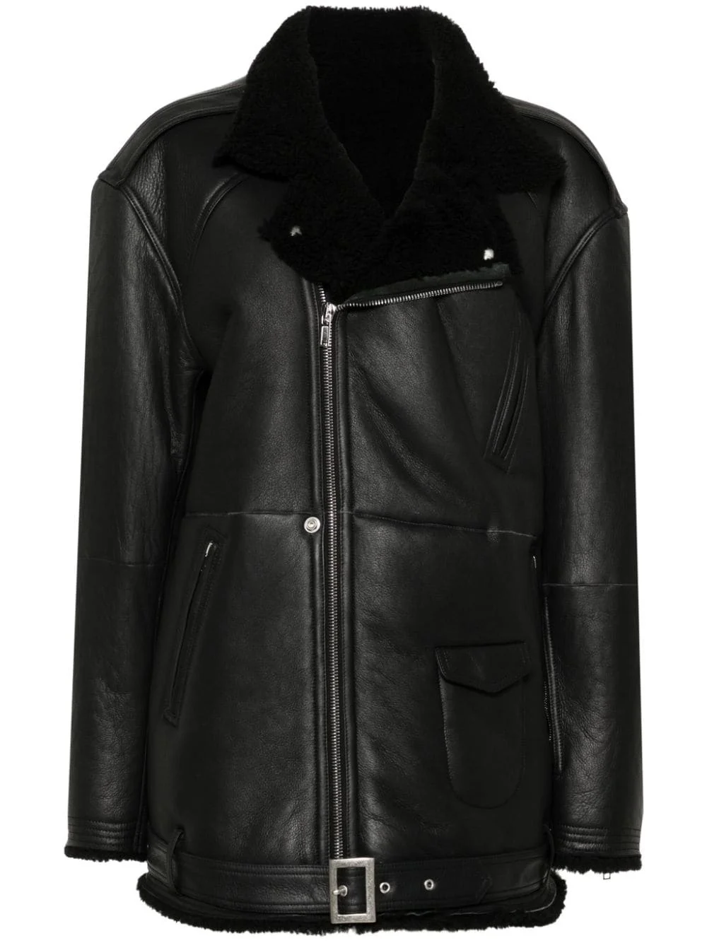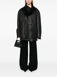 Jumbo Luke Stooges jacket Highlights - Black - Calf leather - Pebbled texture - Double-breasted zip fastening - Notched lapels - Epaulettes - Long sleeves - Cuff zips - Front flap pocket - Three front zip-fastening pockets - Shearling lining - Belted hem Made in Italy Composition Lining: Cotton 100% Outer: Calf Leather 100%, Sheep Skin/Shearling 100% SIZE & FIT Model measurements Height 5 ft 9 in(1.75 m) Bust/Chest 31.88 in(81 cm) Hips 34.64 in(88 cm) Waist 24.01 in(61 cm) Measurement BUST 59.05 in(150 cm) HIPS 51.18 in(130 cm) LENGTH 33.46 in(85 cm) Shoulder Width 23.62 in(60 cm) SLEEVE LENGTH 25.59 in(65 cm) WAIST 51.18 in(130 cm) FittingInformation Designed for an oversized fit, offering additional room throughout The belt offers adjustability for fitted preferences Firm shearling has a treated construction offering some durability This piece is only produced in one size; for help with this item's sizing, refer to our product measurements