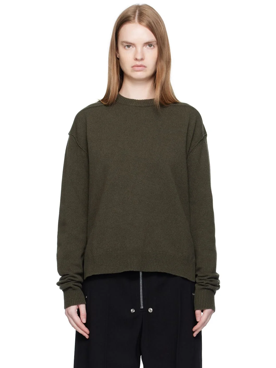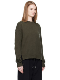 Knit boiled recycled cashmere- and wool-blend sweater. · Exposed seams throughout · Rib-knit crewneck, hem, and cuffs · Vented side seams · Offset seam at dropped shoulders · Garter-stitch stripe at back Supplier color: Bosco 97% recycled cashmere, 3% wool. Made in Italy 252232F096023