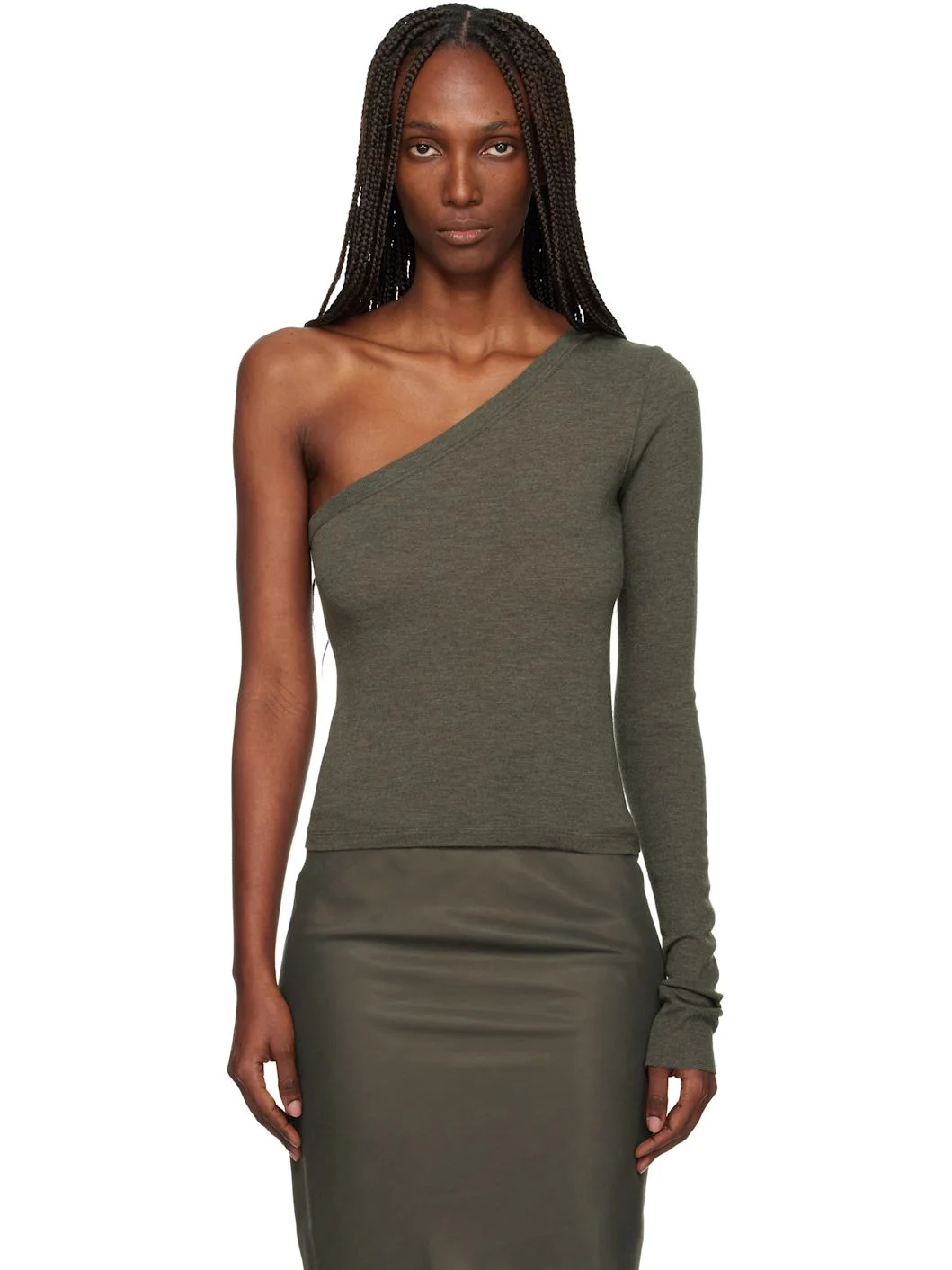 Semi-sheer viscose-blend jersey T-shirt. · FSC-certified viscose · Single-shoulder construction · Central seam at back Supplier color: Bosco 50% viscose, 30% polyamide, 20% wool. Made in Italy 252232F110062