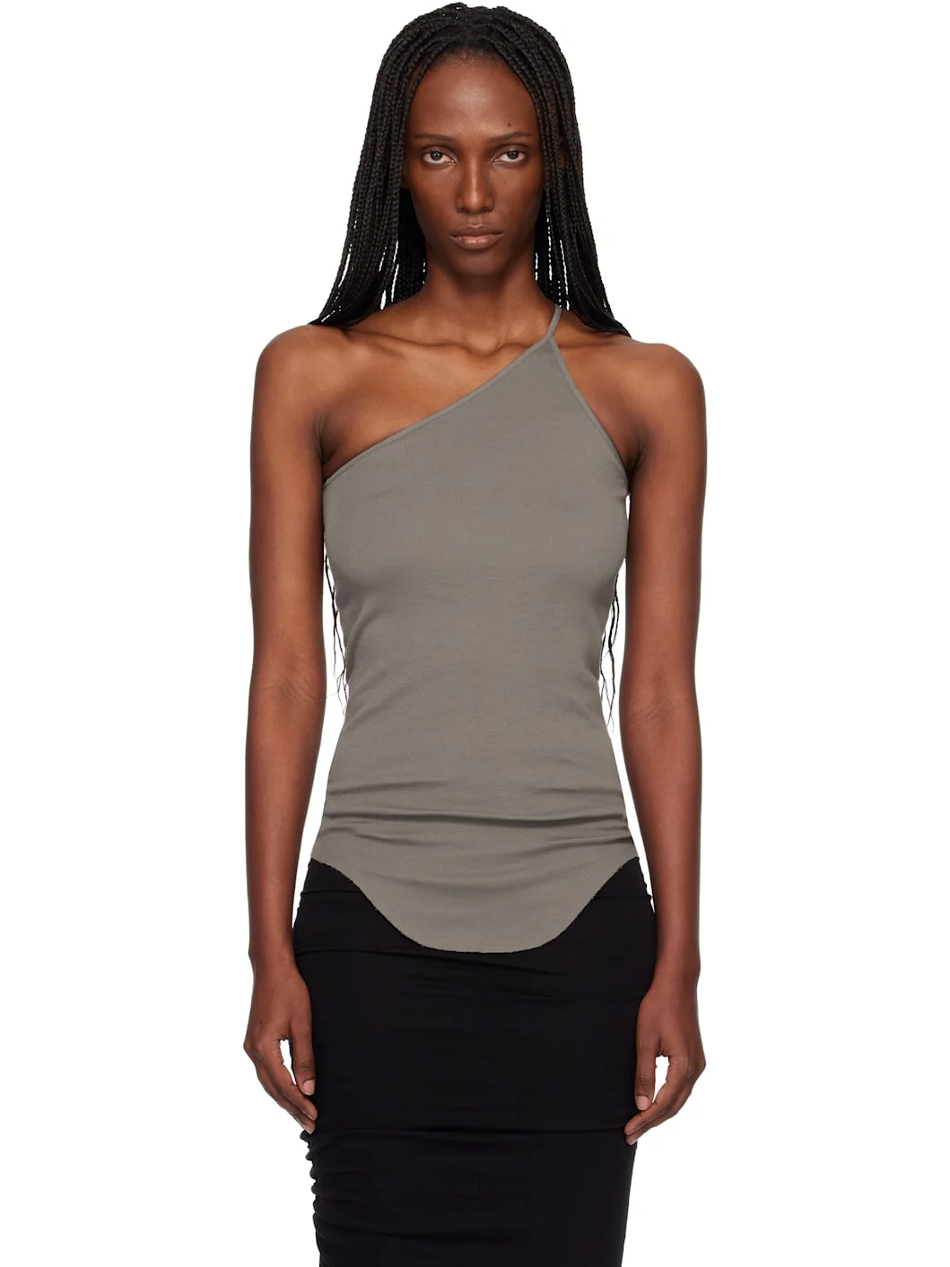 Organic cotton jersey top. · GOTS-certified organic cotton · Single-shoulder construction · Raw edge at curved hem Supplier color: Bean 100% cotton. Made in Italy 261232F111036