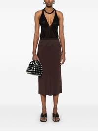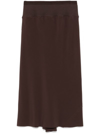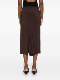 knee bias midi skirt Highlights - Chocolate brown - Elasticated waistband - Pleat detailing Made in Italy Composition FSC Acetate 64%, Silk 36% SIZE & FIT Model measurements Height 5 ft 11 in(1.8 m) Bust/Chest 31.49 in(80 cm) Hips 36.61 in(93 cm) Waist 24.4 in(62 cm) FittingInformation This midi-length skirt is intended to be worn high on the waist Made from a midweight non-stretch fabric Washing instructions Dry Clean Only