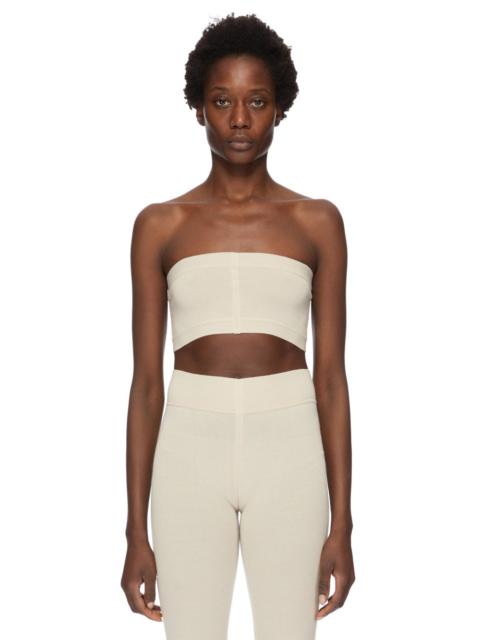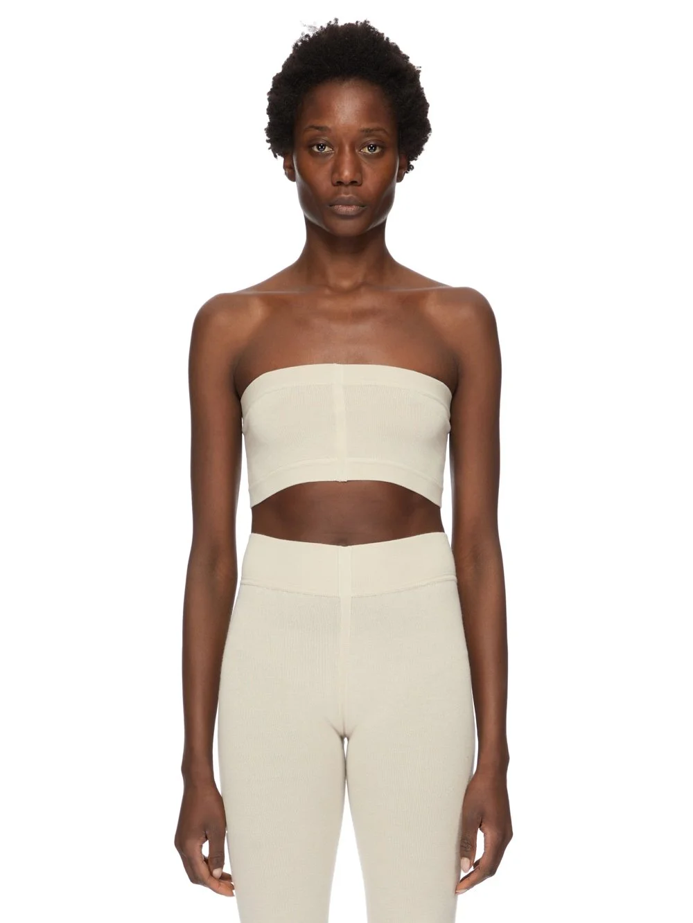 RICK OWENS FW25 CONCORDIANS RUNWAY BANDEAU IN NATURAL LIGHTWEIGHT CASHMERE KNIT THIS BANDEAU TOP IS A SIMPLE TIGHT KNIT TUBE TOP FINISHING BELOW THE BUST. T HAS A FRONT SEAM AND A SIGNATURE CHANNEL RUNNING DOWN THE SPINE THIS LIGHTWEIGHT AND CLASSIC STITCH CASHMERE KNIT HAS A SOFT HANDFEEL COLOR: NATURAL MATERIAL:100% CASHMERE MODEL IS 181CM TALL MODEL WEARS SIZE S
