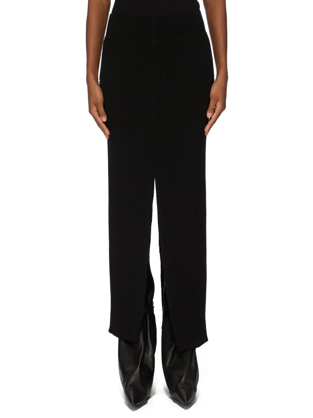 RICK OWENS FW25 CONCORDIANS RUNWAY SHORT SLICED SKIRT IN BLACK WOOL THIS SLICED SKIRT IS ANKLE LENGTH AT SIDES. IT HAS AN ELASTICIZED WAISTBAND AND A CLOSE TO THE BODY FIT. IT FEATURES TWO HIGH SLITS FRONT AND BACK COLOR: BLACK MATERIAL: 100% NEW WOOL MODEL IS 181CM TALL MODEL WEARS SIZE S