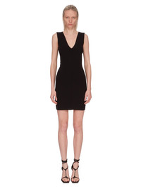RICK OWENS SS24 LIDO TANK MINI DRESS IN BLACK STRETCH VISCOSE KNIT THIS TANK MINI DRESS IS ABOVE KNEE LENGTH AND SLEEVELESS WITH A TIGHT FIT. IT HAS A V NECK FRONT AND BACK AND A TANK TOP SHOULDER STRAPS. IT HAS A CENTRE SEAM LINE FRONT AND BACK THIS KNIT IS MADE WITH ECOVERO CERTIFIED VISCOSE WHICH ENSURES THAT THE FIBERS ARE PRODUCED FROM RESPONSIBLY MANAGED PLANTATIONS AND NO DEFORESTATION OCCURS- COLOR: BLACK - MATERIAL: 63% VISCOSE + 27% POLYESTER + 7% NYLON + 3% ELASTANE - - MODEL IS 181CM TALL - MODEL WEARS SIZE S