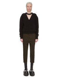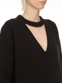RICK OWENS FW24 PORTERVILLE ECLIPSE IN BLACK HEAVY WOOL KNIT THIS ECLIPSE SWEATER IS ABOVE HIP LENGTH, WITH LONG SLEEVES. IT HAS A ROUNDED SHAPE, RIBBED ROUND NECK WITH V CUT-OUT, AND RIBBED CUFFS AND HEM. IT FEATURES THE FRONT LEVEL SHOULDER LINE AND A KNIT CHANNEL RUNNING DOWN THE CENTRE BACK SPINE THIS IS A HEAVY WOOL FISHERMAN KNIT. - COLOR: BLACK - MATERIAL: 100% NEW WOOL - MODEL IS 181CM TALL - MODEL WEARS SIZE S